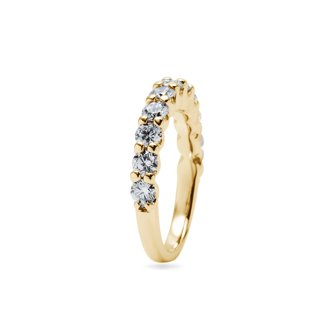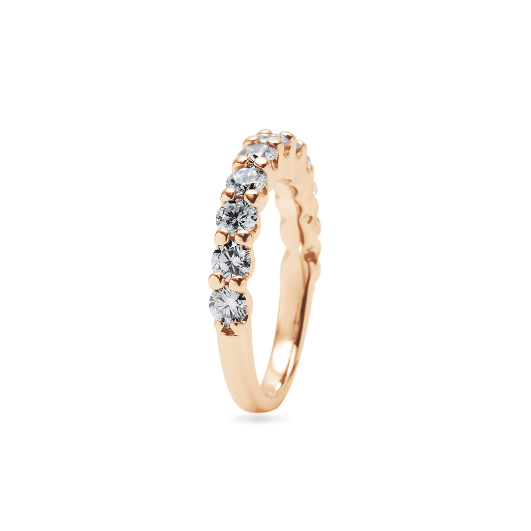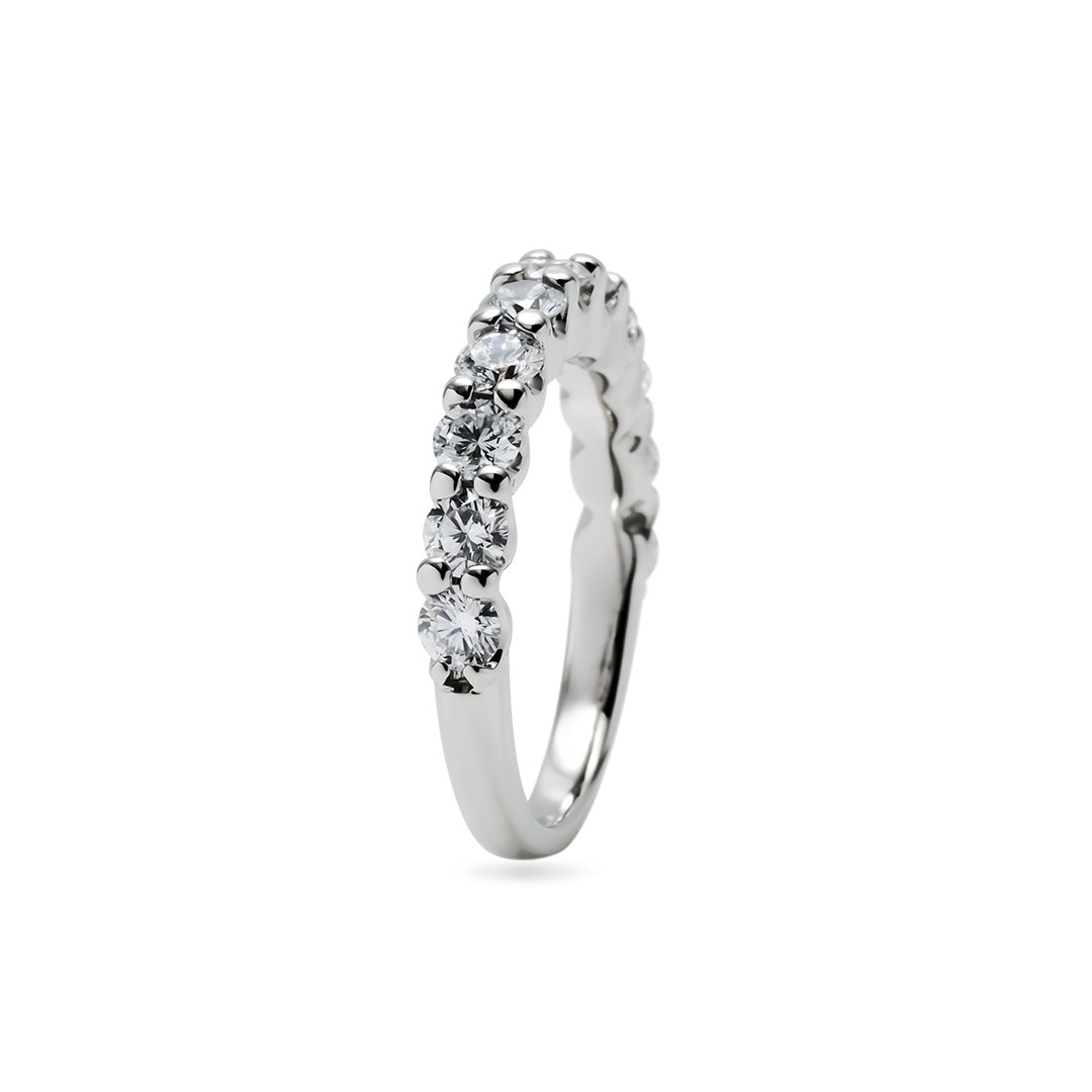 一本で主役に、重ね着けで華やぎを——ダイヤ品質とデザインに妥協しない、大人のためのハーフエタニティです。