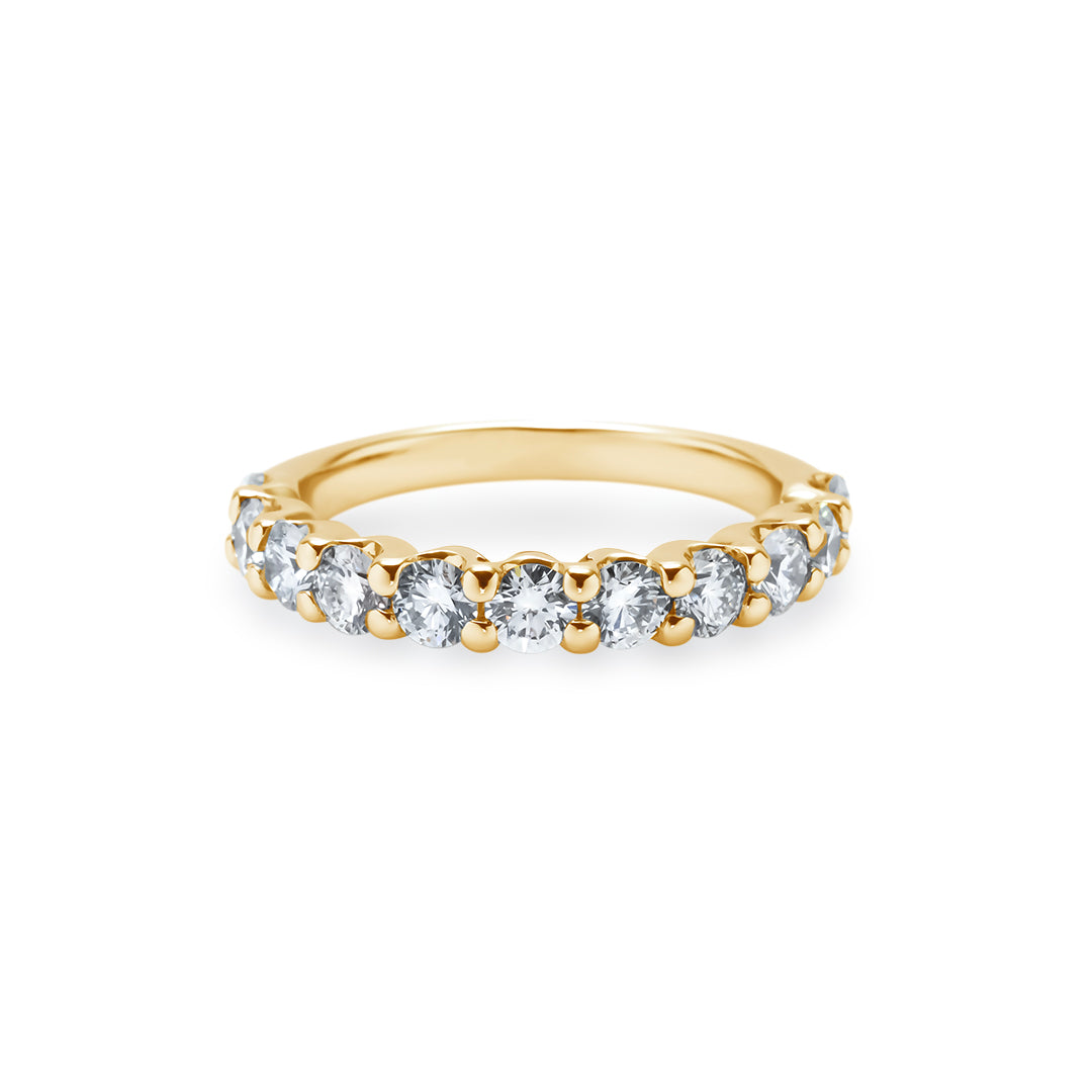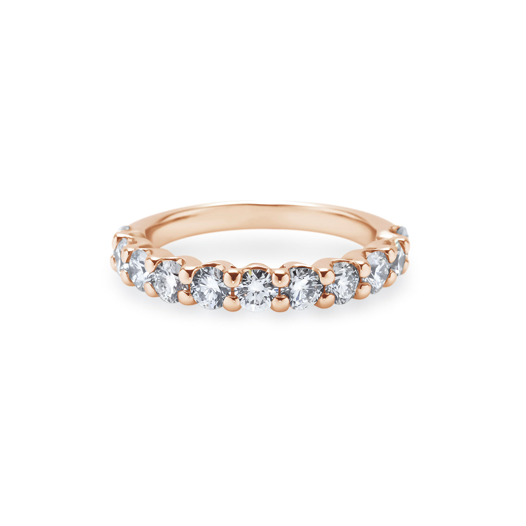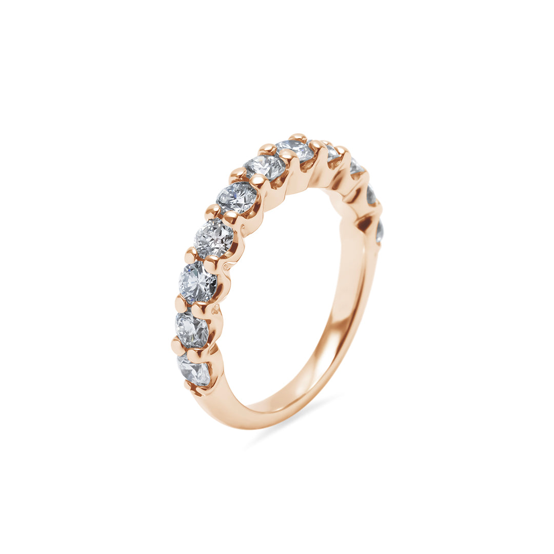 一本で主役に、重ね着けで華やぎを——ダイヤ品質とデザインに妥協しない、大人のためのハーフエタニティです。